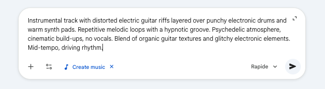 - Génération musicale haute fidélité : prompter une idée suffit, d'une ambiance générale ("un morceau d'anniversaire festif") jusqu'aux détails techniques (tempo, dynamique, style vocal).
