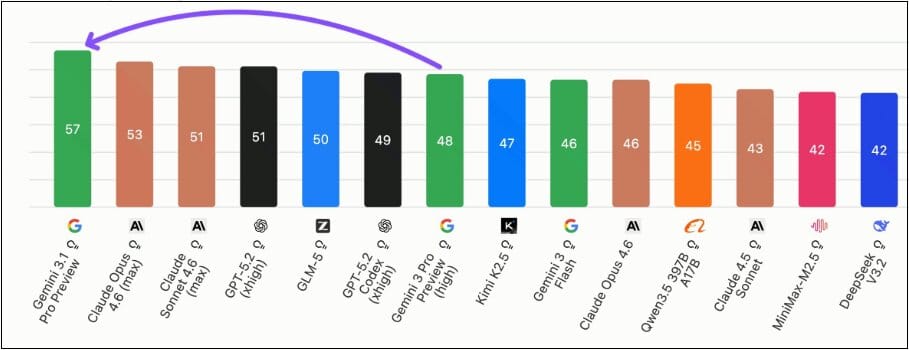 🤖 Toujours plus. Google lance Gemini 3.1 Pro, une mise à jour majeure de son modèle phare, axée sur le raisonnement complexe :