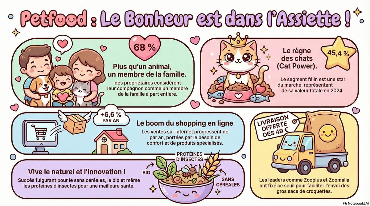 J'ai créé cette infographie kawaii sur le marché de la nourriture pour chats en un clic. Sympa. 😻