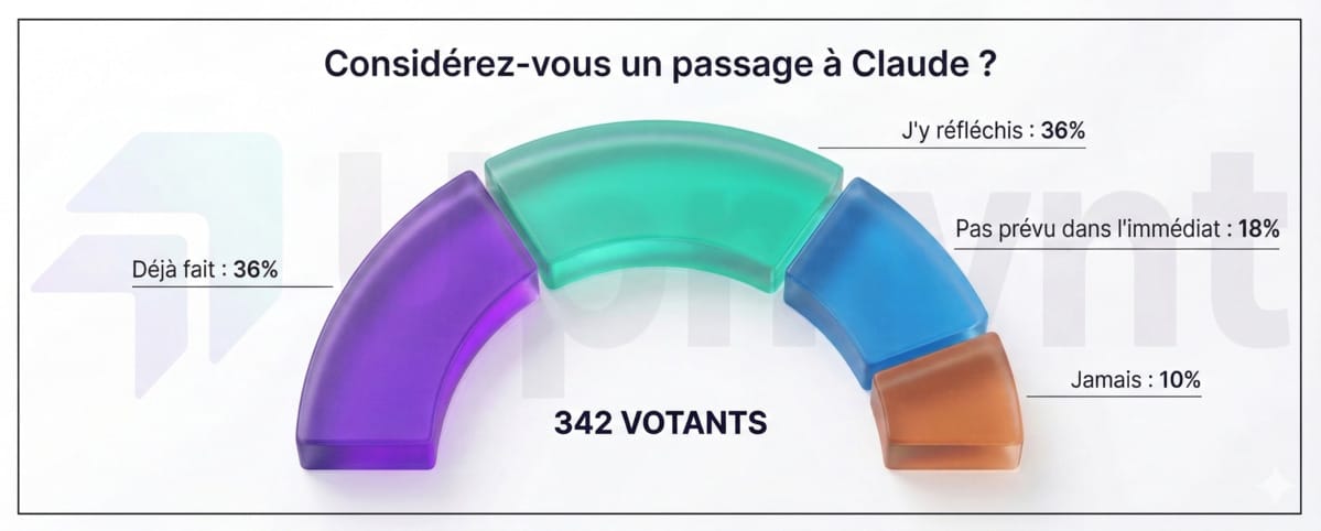 La question était : considérez-vous de switcher vers Claude ? Vous avez été plus de 340 à répondre, ce qui permet un échantillon tout à fait représentatif.