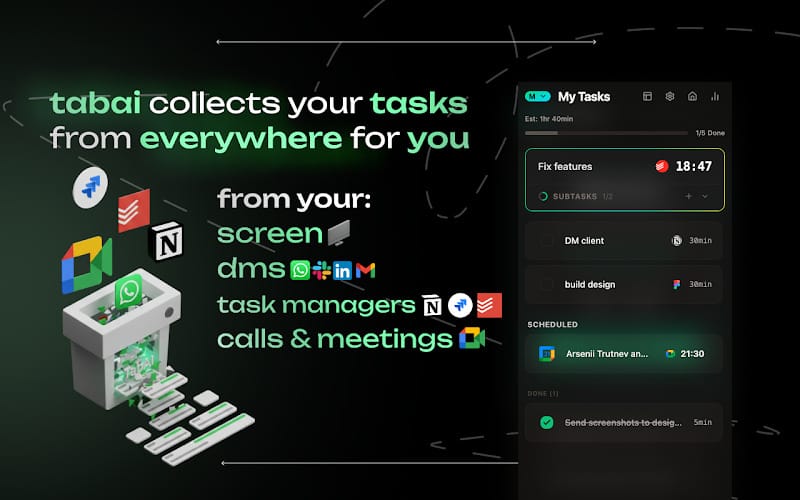 ▹ TabAI : TabAI est une extension Chrome bien foutue qui centralise vos tâches, les organise et vous aide à rester concentré.