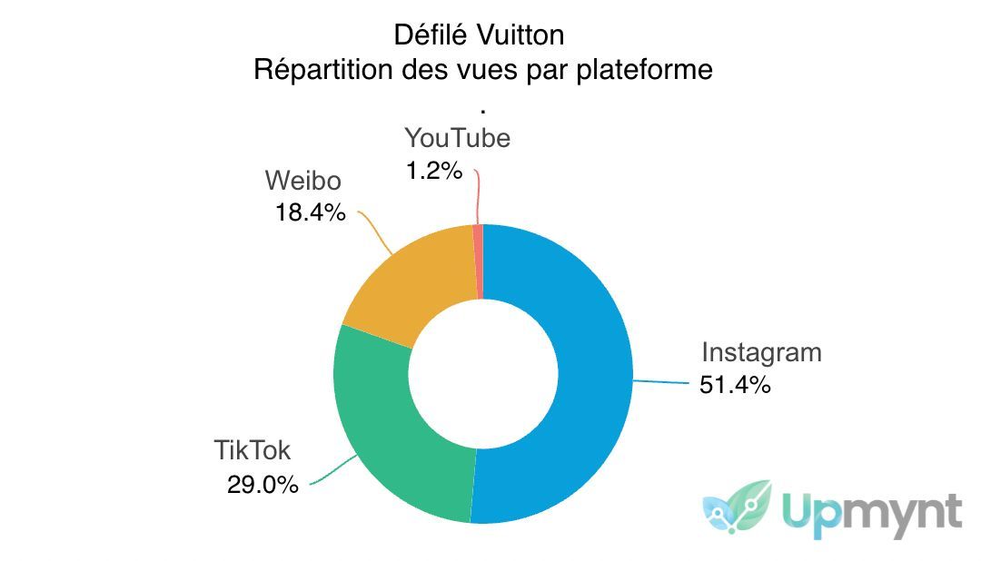 LVMH mentionne les vues sur les réseaux TikTok, YouTube et Weibo. J'ai aussi comptabilisé Instagram et j'ai fait le décompte :