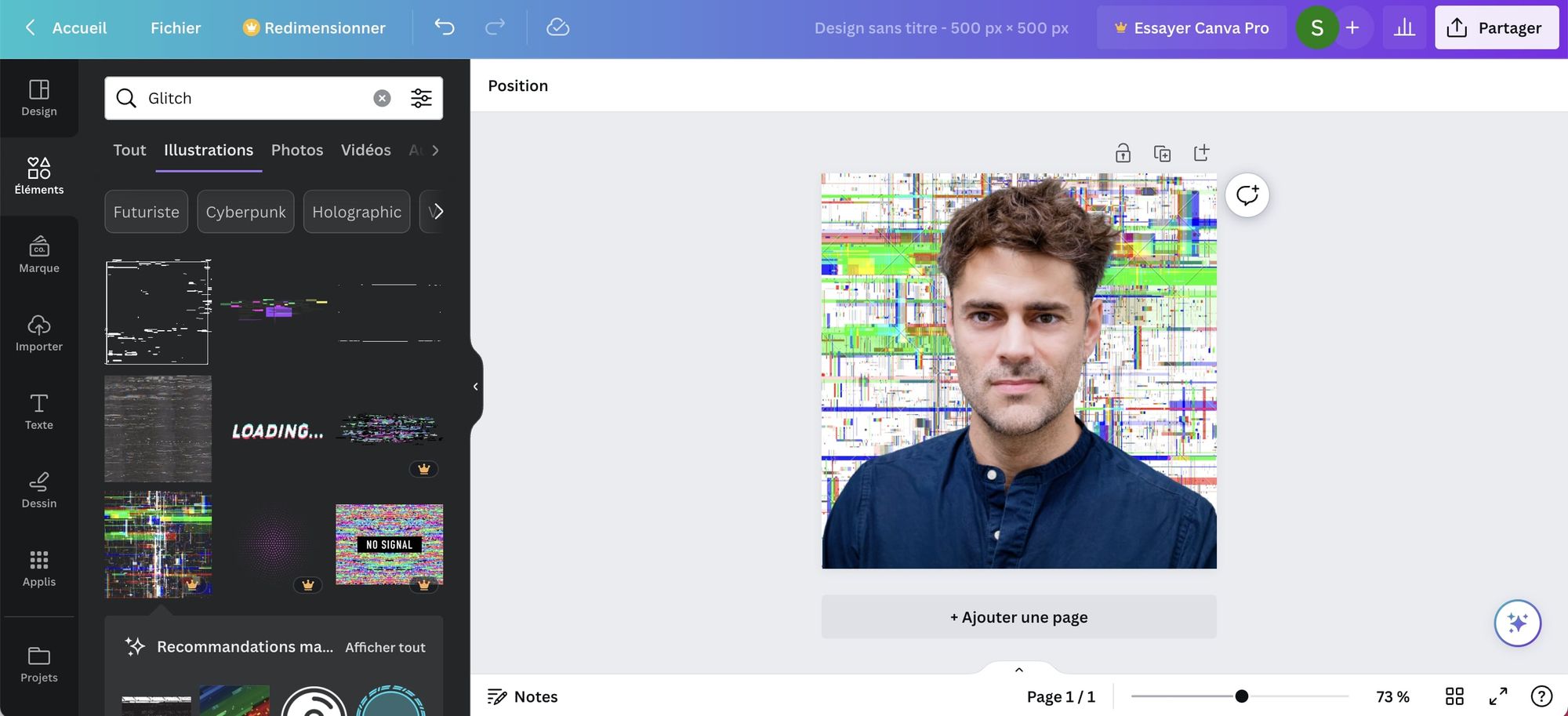 Et ensuite, vous pouvez transférer le PNG transparent ainsi créé sur Canva pour le retravailler, par exemple en ajoutant un nouveau background parmi les centaines proposés par l'outil.