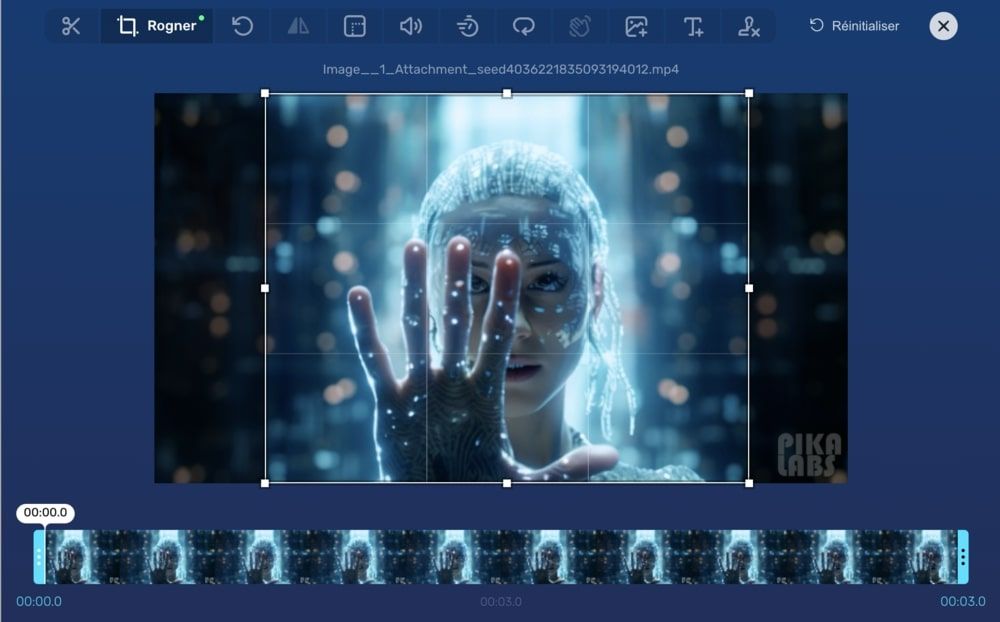 6️⃣ Oui, la vidéo arbore un watermark disgracieux "Pika Labs". Pour vous en débarrasser (no shame), rognez-la grâce à ce service en ligne gratuit et ultra simple d'utilisation.