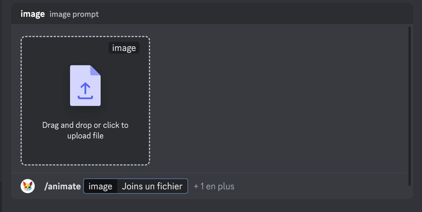 3️⃣ Vous voilà dans un chat privé avec le Pika Bot. Entrez la commande "/animate" puis ajoutez le fichier image de votre choix.