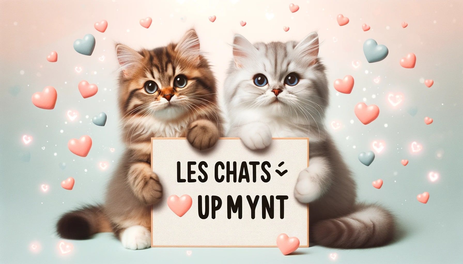 Crée un visuel photo super cheesy de deux petits chatons qui tiennent une pancarte "LES CHATS ❤️ UPMYNT". format 16:9Et un peu plus sérieusement, vous pouvez insérer votre marque dans n'importe quel contexte, et même la détourner vers des produits inattendus.