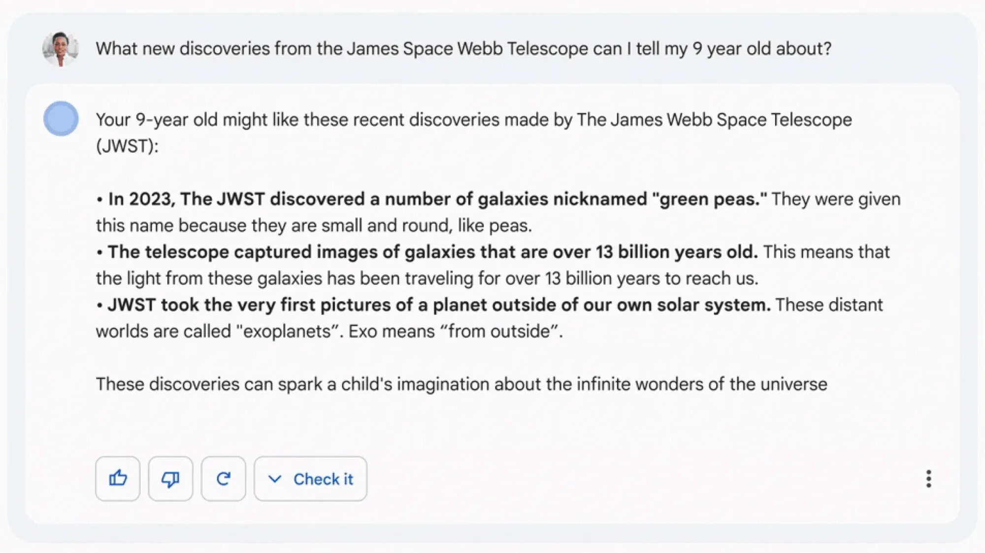 Dans le trailer de présentation, une réponse de Bard inclut une réponse erronée :
