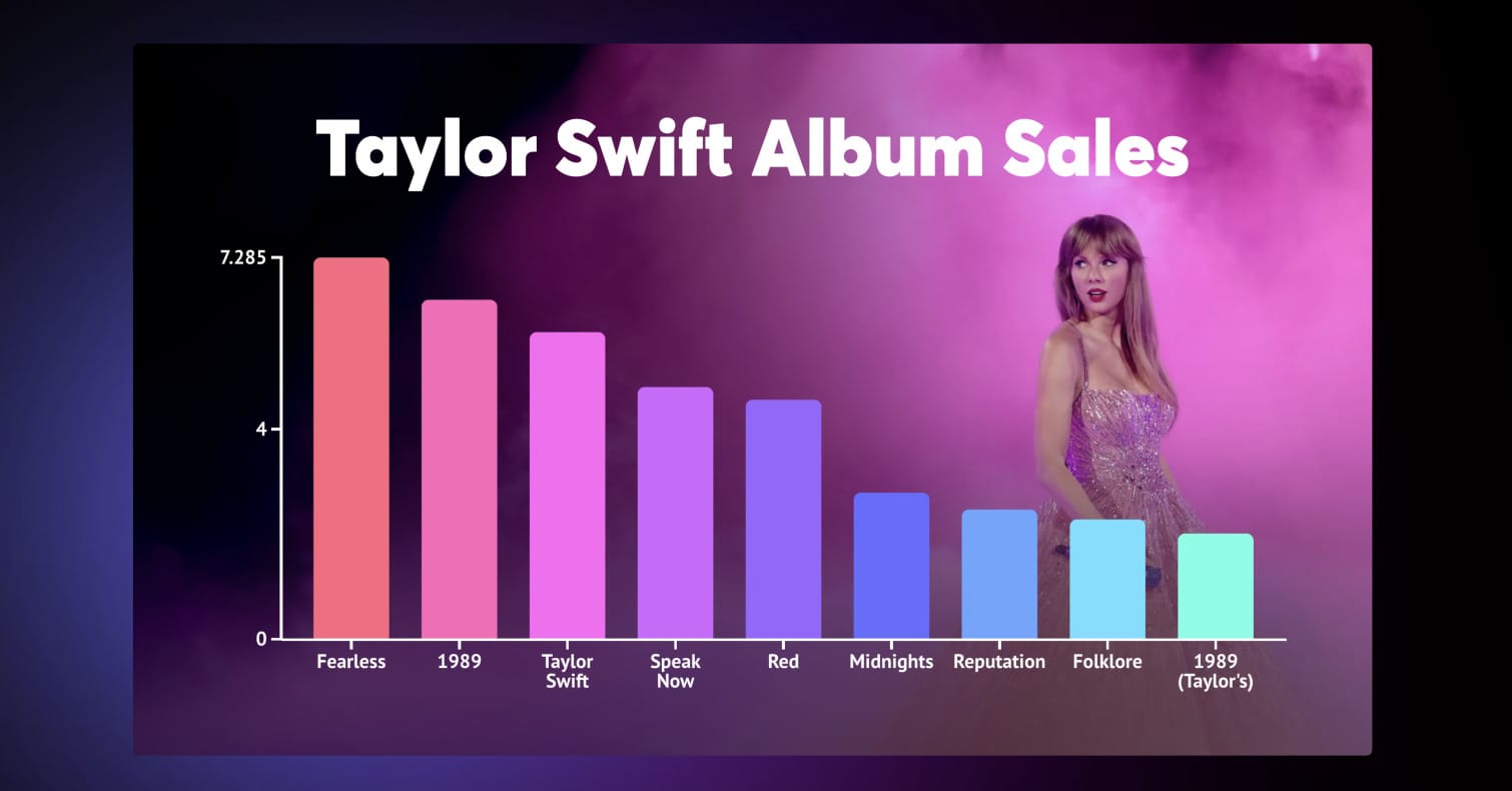 L'outil vient en tout cas d'être amélioré et permet désormais d'ajouter des graphiques à ces slides. L'option est encore assez basique (il est par exemple impossible de faire apparaitre chaque donnée, comme dans l'exemple ci-dessus où les ventes de chaque titre n'apparaissent pas) mais il est probable que cela soit corrigé bientôt.